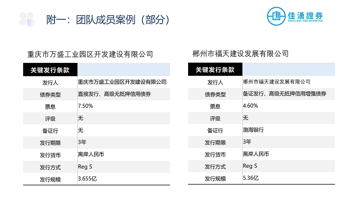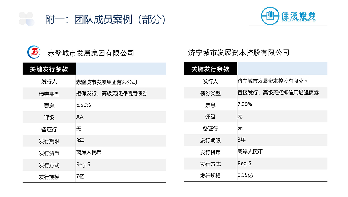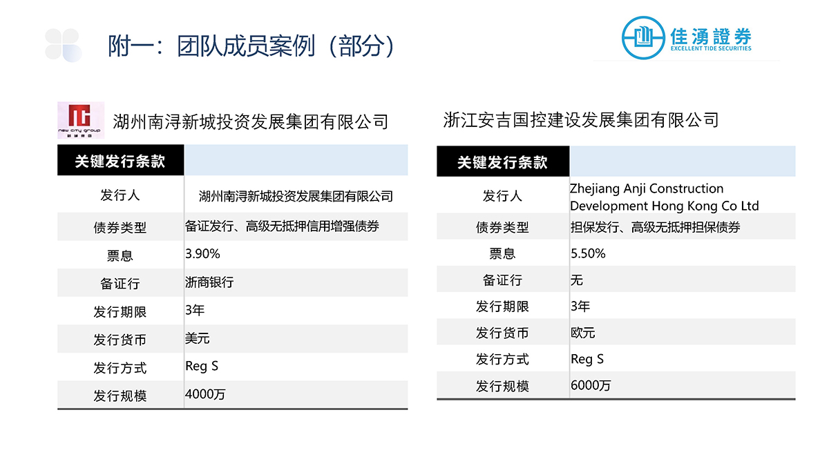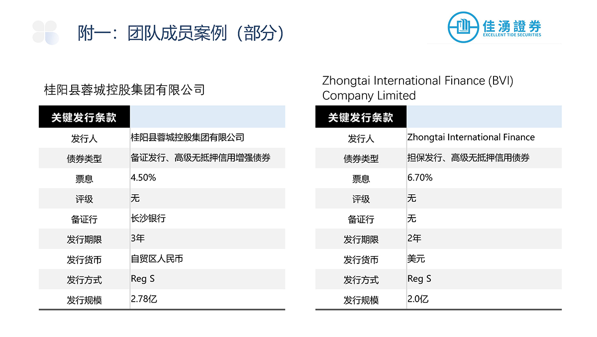 佳湧證券積極參與中外資本市場,主要負責爲發行商進行首次公開發售、配售以及股本相關的承銷發行項目,當中更包括爲發行項目提供投資工具架構、時間表和定價方面等建議,盼透過廣泛的承銷網絡滿足企業的長期發展戰略和融資需求。