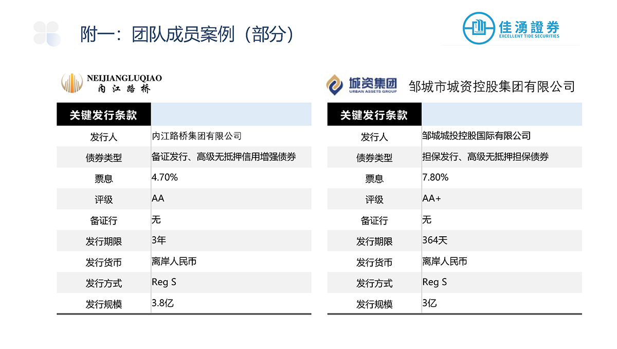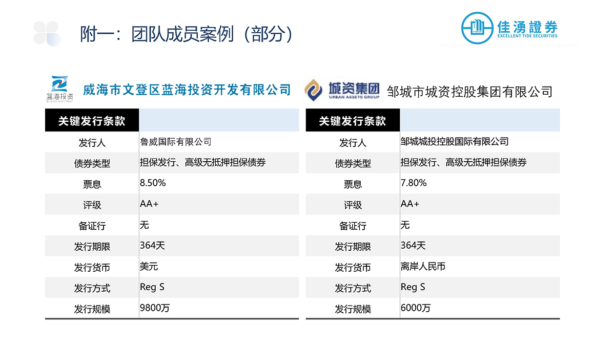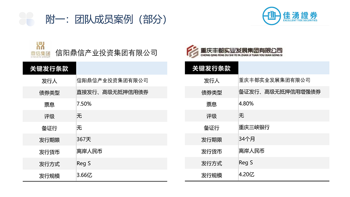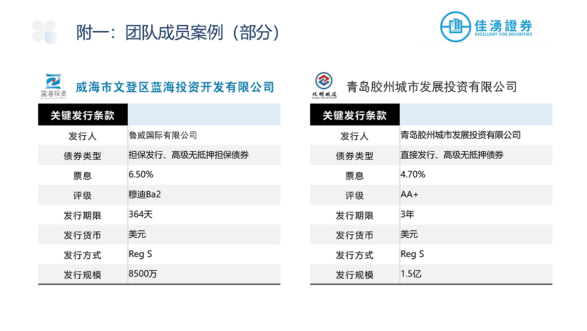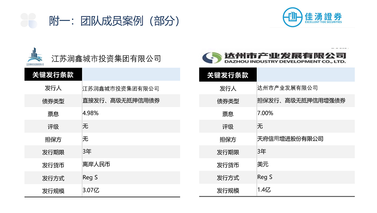 佳湧證券積極參與中外資本市場,主要負責爲發行商進行首次公開發售、配售以及股本相關的承銷發行項目,當中更包括爲發行項目提供投資工具架構、時間表和定價方面等建議,盼透過廣泛的承銷網絡滿足企業的長期發展戰略和融資需求。